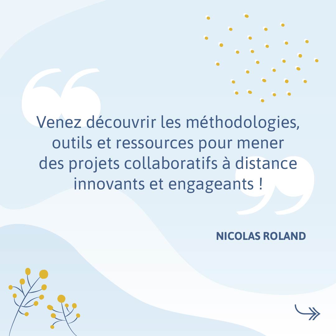 La conférence de Nicolas Roland “Les clés pour engager les élèves dans un projet à distance” sera diffusée en live de 14h45 à 15h30.