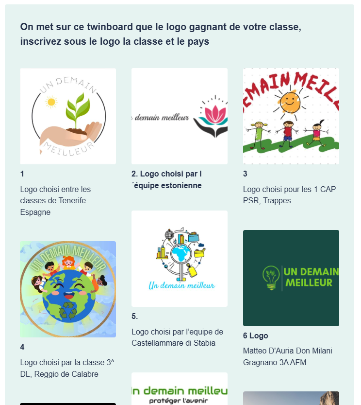 Capture d’écran du TwinBoard permettant de répertorié les différents logos proposés par chaque classe avant le vote final